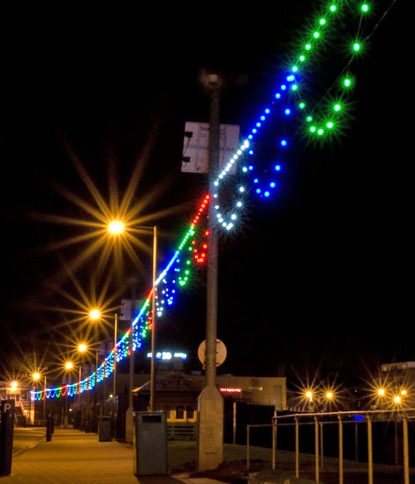 - Iluminación por festones con múltiples aplicaciones a lo largo de senderos costeros, senderos peatonales e iluminación decorativa.